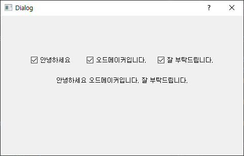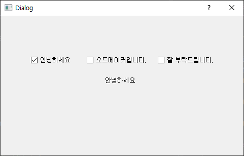 "안녕하세요"와 "오드메이커입니다" 두개를 체크했을 때 입니다.