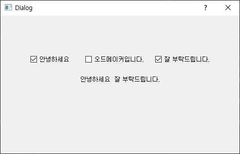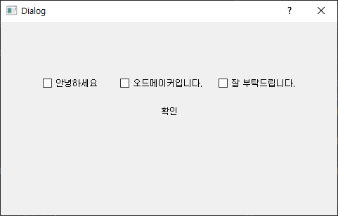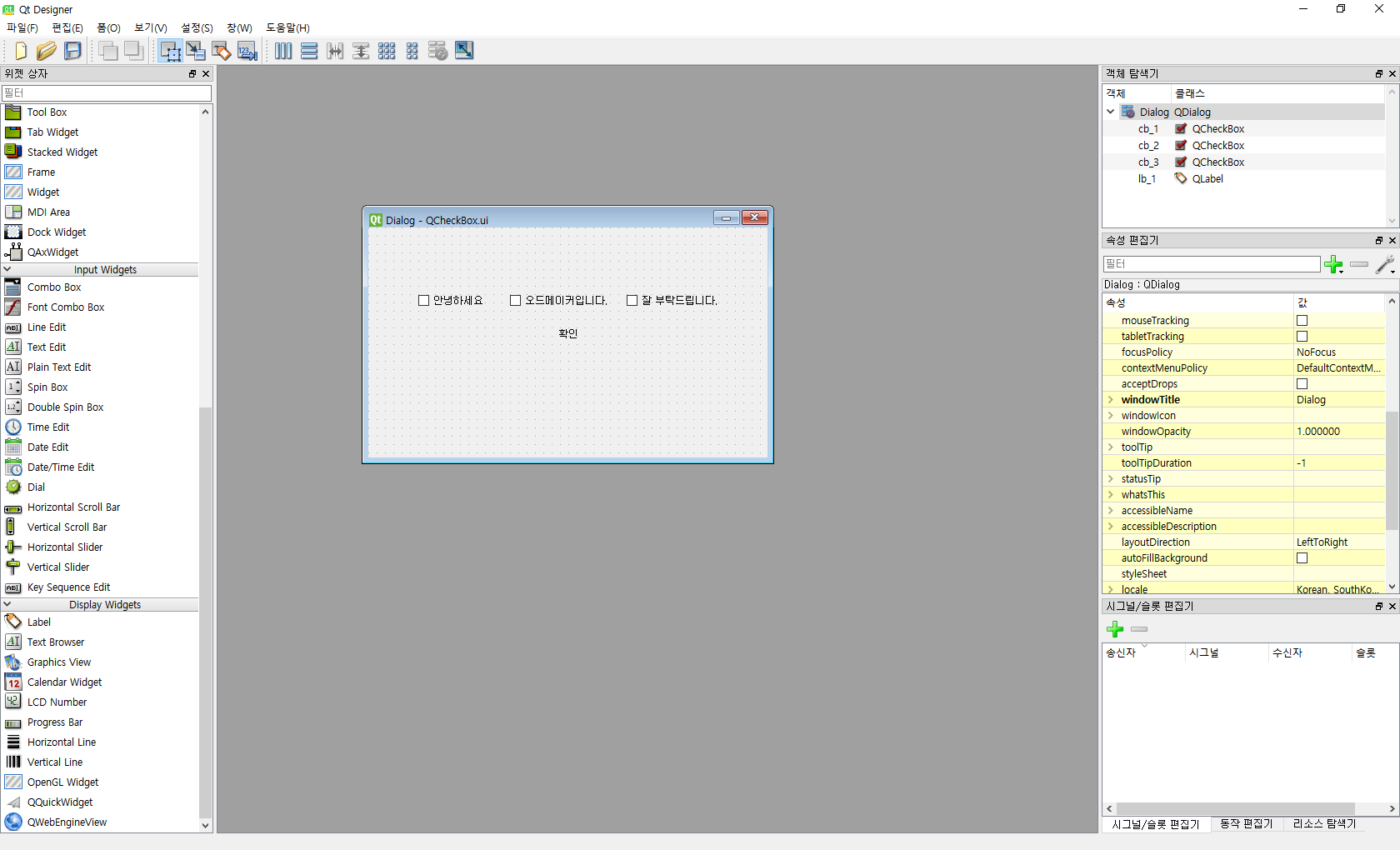 우선 3개의 체크박스와 하나의 라벨을 designer를 이용하여