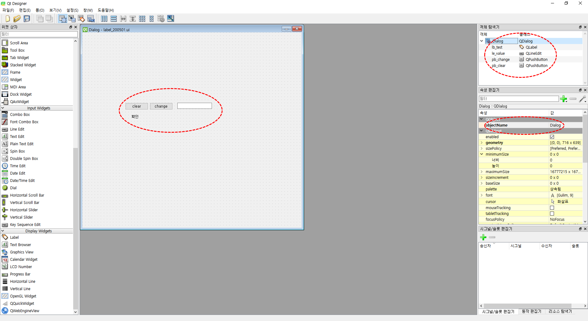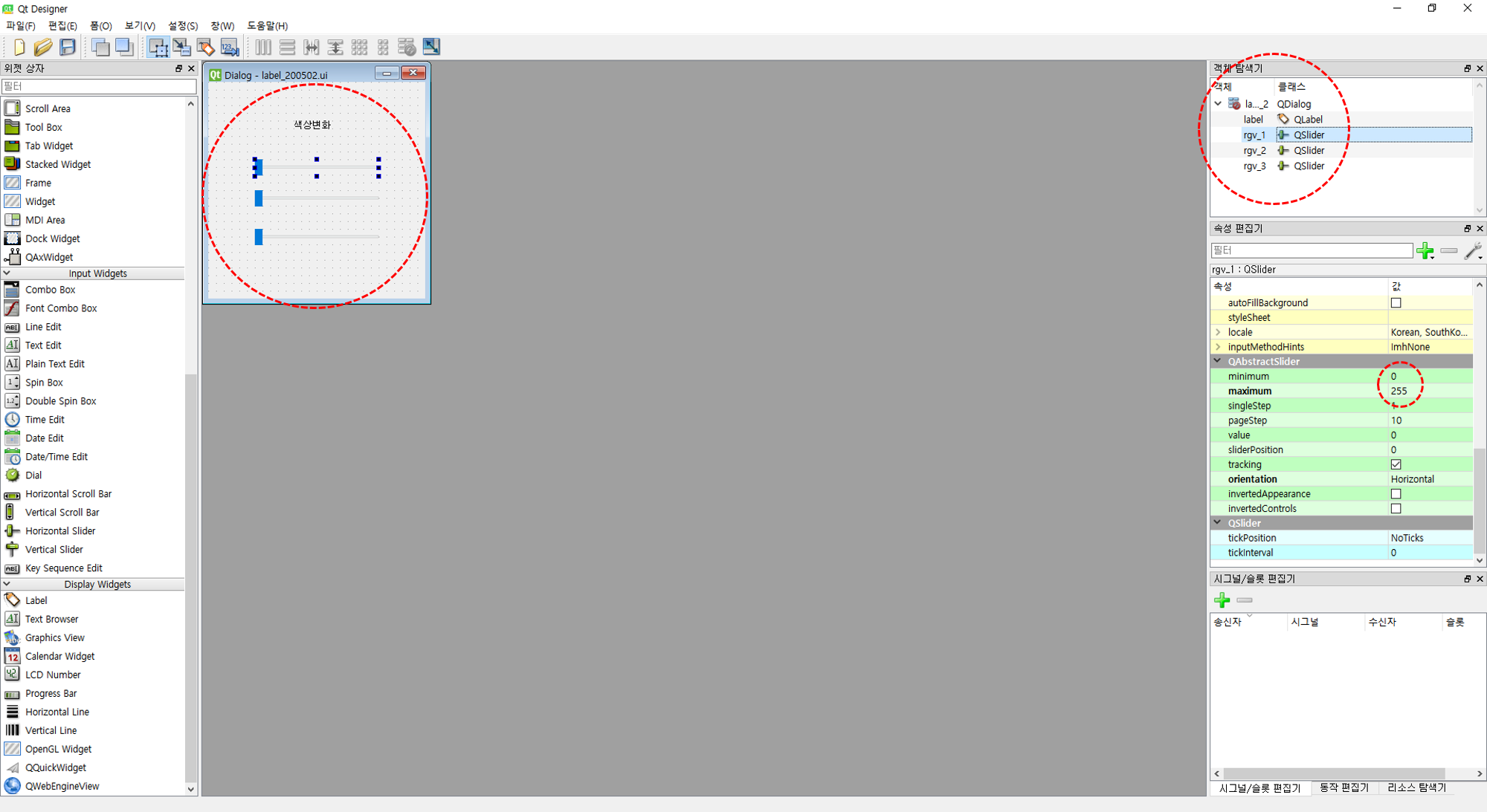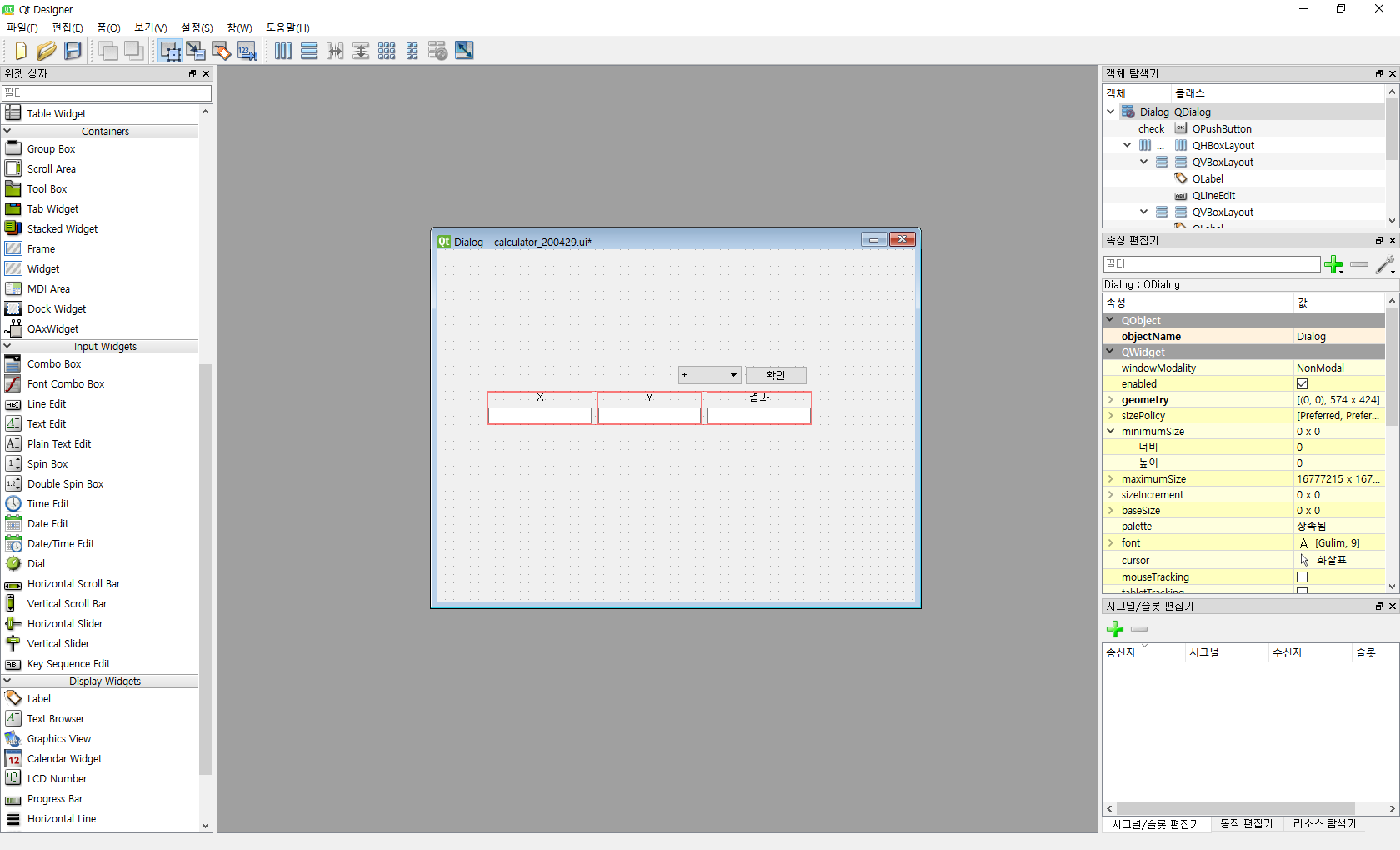우선 3개의 체크박스와 하나의 라벨을 designer를 이용하여